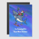 Santa isn't using the deer this year. Instead he's riding a friggin' GREAT WHITE SHARK! Check out this fun and colourful cartoon illustration for some holiday fun. Featuring a strange and hilarious cartoon of Santa riding a shark with some little elf friends along on a dreamscape-like blue night sky background with falling snow. Of course it includes the caption "Dreaming Of A Great White Christmas". This fun design is a sure hit.