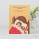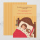 Send your holiday message of peace and joy with this adorable, hand-drawn image of a child snuggled in bed next to a teddy bear. A Christmas stocking is hung from the bedpost.