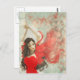 This postcard features a flamenco dancer dreaming of her hometown in Spain as she dances.