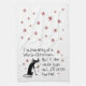 I'm dreaming of a White Christmas. But if the white wine runs out, I'll drink the red. Because the Cabernet Cat is all about red wine anyway. I guess you could say he's ambi-WINE-rous. (Ooh, not funny, sorry!) So this trendy wine quote is on a Christmassy kitchen towel. There's The Cat himself holding his almost-empty glass of white wine, a cool retro font, and lots of burgundy stars.