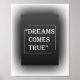 This captivating poster features the powerful message "Dreams Come True" written in elegant white alphabets against a striking black background. Perfect for inspiring and motivating yourself or others, this poster serves as a constant reminder that with dedication and belief, dreams can become a reality. Hang it in your home, office, or any space where you seek inspiration and encouragement. Embrace the power of your dreams with this visually stunning and uplifting poster.