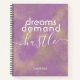 This modern design features faux gold dust sparkle over a purple background with the text "Dreams Demand Hustle" in modern typography with your personalised name below. Personalise by editing the text in the text box provided.
