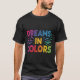 This vibrant t-shirt features the message "Dreams in Colours" in a stunning multicolor design. Each letter explodes with a different hue, creating a playful and optimistic look that reflects the boundless potential of your dreams. Whether you're a creative chaser or a dreamer at heart, this shirt is the perfect way to express your vibrant spirit and inspire those around you.