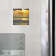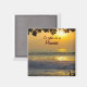 The top of the magnet is framed with a bough of a large shade tree in the sand.