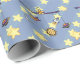 Bring out the dreamer in your little one with this playful, space-themed mobile adorned with a crescent moon, shooting star, bright sun, rocket ship, and colourful planet hanging from arms with blue and purple zigzag details and a star right in the middle. A pattern of pale blue stripes in two shades and soft yellow stars adds a nice background to the brightly coloured mobile. Customise the monogram in the sun with the soon-to-be little one's last initial to create a truly unique wrapping paper for your chosen gift. Be sure to check out the full Dreams of Space Mobile collection for more great gifts and products for a baby shower or the little one in your life.