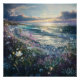 A mesmerizing poster depicting a surreal ocean with gentle waves rolling onto a shore adorned with vibrant wildflowers. This enchanting blend of sea and meadow evokes a sense of tranquility and wonder, creating a unique fusion of coastal serenity and untamed beauty. Perfect for dreamers, nature lovers, and those seeking an artistic escape into a fantastical seascape.