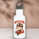 This personalised water bottle features a chubby, cartoon-style baby pilot flying a tiny, vintage red biplane! The cute little pilot wears a classic brown aviator hat and goggles. A red banner stands over the design with your child's name.