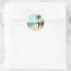 Includes 20 small stickers on one sheet. A romantic illustration of a couple kissing on a serene beach, surrounded by palm trees and the calm sea, perfect for adding a touch of love to any space.