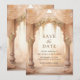 Amaze your guests with this elegant Indian wedding save the date featuring beautiful arches decorated with curtains and cream flowers.