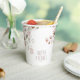 Delicate, foliage arrangements with small flower accents in soft, dreamy shades of cream, taupe and rose gold with splashes of glitter, and unique design layouts make this an exciting collection, especially for spring weddings. The wedding paper cup shown here features a lush foliage corner border surrounding the bride and groom's names and wedding date. View the collection link on this page to see all of the matching items in this beautiful design or search ID817 to see other pieces and colour choices for this set.
