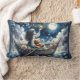 Dreamy Girl Rowing Boat Moonlit Fantasy Scene Lumbar Cushion
