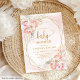 Celebrate your little girl with these blush pink and gold baby shower invitations featuring watercolor florals, pastel peonies, and a sparkling gold glitter frame. Designed in a chic boho style, these girl baby shower invitations combine elegance and sweetness with soft pastel pink, ivory, and sage accents. Perfect for setting the tone of your celebration, they let guests know they’re invited to a magical and memorable event. With their delicate floral design and shimmering gold details, these pink and gold invitations are the ideal choice for hosting a stylish and feminine baby shower. Customise effortlessly and create a keepsake your guests will adore.