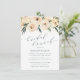 This elegant and modern floral bridal shower brunch invitation features a bouquet of soft pastel watercolor sea roses in shades of blush pink, cream and coral accented with delicate green leaves and dainty dustings of gold glitter. Your bridal shower details appear in a chic smoky blue lettering finished with stylish handwritten style calligraphy. Reverses to a charming coral pink watercolor wash.