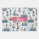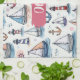 This personalised kitchen towel features playful sketches of sailboats, anchors, and lighthouses with bright pastel watercolor textures in light blue, lavender, and peach to fill some elements, adding a soothing, dreamy aesthetic.