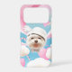 Lose yourself in a world of whimsical wonder with Smile Pup! This enchanting cinematic illustration features our happiest Bichon Frise dressed to impress in a dapper white top hat and a grey bowtie. Surrounded by a dreamy sky filled with soft pink hearts, candy canes, and cotton-candy clouds, this piece captures a moment of pure, magical joy.