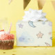 This adorable wrapping paper features a sketchy illustration of playful stars, crescent moons, and fluffy clouds with soft pastel watercolor.