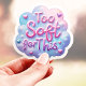 Add a little softness to your day with this dreamy Too Soft For This sticker featuring pastel clouds, hearts, and sparkles. Perfect for laptops, planners, water bottles, phone cases, or journals. Printed on high-quality vinyl with a glossy, long-lasting finish. A sweet and gentle vibe for those who feel all the feels. Makes a perfect small gift or a little treat for yourself.