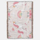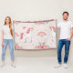 Girly Unicorn All Seasons Throw Blanket featuring dreamy, cute Unicorn dreamland with flowers, rainbows and clouds in pale pastel colours. Personalise name (placed in the cloud) or delete, if you prefer.