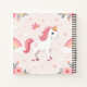 Girly Unicorn Notebook featuring dreamy, cute Unicorn dreamland with flowers, rainbows and clouds in pale pastel colours. Personalise name or delete, if you prefer.