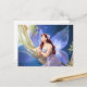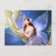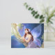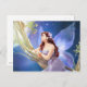 Fantasy card with a beautiful dreamy fairy looking at the yellow blossom of a tree.