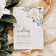 Wedding invitations featuring dreamy white winter floral and leaves.