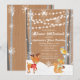 A winter wonderland to celebrate your little ONE! Start your celebration off with this dreamy invitation. Great for the winter wonderland theme. It has string lights, snowflakes, snow, and birch trees on a tan wood background. There are forest animals in the snow, a deer, squirrel, and a bird in the trees. Personalise with your party information in the centre. Customise this invitation with font style, colour, and size.