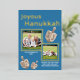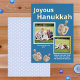 These personalised Hanukkah cards are made special with two of your favourite photos and real gold foil printing. The simple medium dark blue background sets the tone for two of your pictures framed in chunky boarders of real gold foil with three faux oak wood style dreidel images scattered above and below to balance the design. JOYOUS HANUKKAH in simple modern letters across the top of these real foil Chanukah flat cards is also printed in gold foil while two text templates in simple white fonts below your photos allow you to express your holiday wishes to friends and families during the Festival of Lights. Each card reverses to a soft baby blue with white polka dots.