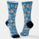 Add these optional monogram Hanukkah socks to your party attire for any Festival of Lights event or gift a pair to everyone in the family on one of the nights of giving. Set on a background of rich medium dark blue, a scatter pattern of little faux oak wood dreidels turned every which way along your monogram initial in sky blue and dots here and there in the same bright blue tone. From lounging to flashing some Hanukkah flair at the office or a Chanukah party, these personalised Hanukkah socks are a cute way to help celebrate the holiday.