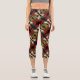 Drenched Red And White Roses Pattern Capri Leggings
