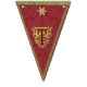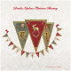 A set of sixteen durable indoor/outdoor, easy-wipe-clean flags look deceptively luxurious in prints of damask silks and linens and a chintz rose print, spelling out the words "Merry Christmas!" Each flag design was created with layers of exceptional details, meticulously placed. Print visuals are reminiscent of the ornate gold foil trim borders, beautifully-embossed golden die cut shapes, and glittery gold flake hand gilding used in handcrafting exquisite Dresden holiday ornaments. The "fabrics" in this bunting banner coordinate with our Dresden Angels product line, including our Dresden "Chinoiserie" and Dresden "Lordly" Christmas stocking designs. Find them all in the Cheeky_Poppets store.