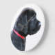 You just can't resist this cute black labrador puppy dressed in a red collar . A wonderful gift to any black lab lover .