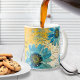 Introducing our Vintage Look Daisies Coffee Mug, a charming and nostalgic addition to your kitchen decor. This two-sided mug features a rustic ochre and soft turquoise background, with light blue dried daisies as the focal point.
