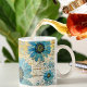 Dried Blue Daisies on Ochre Surface Flowers Quotes Coffee Mug