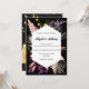 Elegantly blending contrasting elements, this stunning wedding invitation features a vibrant, multi-hued floral design blossoming against a deep black background. Encased within a timeless geometric border, the card's stylish font adds a touch of modern sophistication, promising a memorable celebration of love and joy.