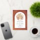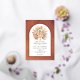 Tropical dried palm leaves, pampas grass and protea flowers real gold foil arch real gold foil wedding invitation. This lovely wedding design features a gold foil arch frame on terracotta stained background. In the frame there is a bouquet of dried palm leaves, protea flowers and pampas grass.