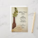 Customise the rustic Dried Hops and Wheat Brewery Wedding Menu with the details of the meal that you will serve at your beer theme bridal shower luncheon, post wedding brunch or marriage reception dinner by adding the salad or first course, entree or second course and dessert or third course. Personalise it with the names of the bride and groom, event venue and date. This charming custom wedding menu features a photograph of a brown glass beer bottle, dried white, dried green hop vine and white bridal veil. Perfect inspo for the couple who will be serving craft beers or micro brews at their gathering.