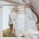 This boho vellum wedding invitation features a soft watercolor design with pampas grass, dried palm leaves, and white orchids. Printed on translucent vellum, the elegant artwork brings a modern boho vibe to your wedding stationery. The neutral colour palette pairs beautifully with beige, ivory, or earth-toned wedding themes. Customise with your names, date, and event details. Pair it with handmade paper, wax seals, or twine for a timeless and romantic presentation.