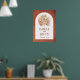 Tropical dried palm leaves, pampas grass and protea flowers terracotta arch botanical cards and gifts wedding poster. This beautiful wedding design features an arch frame on terracotta stained background. In the frame there is your text, a bouquet of dried palm leaves, protea flowers and pampas grass.