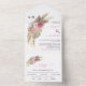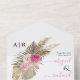 Dried pampas grass and palm leaves boho all in one wedding invitation. A lovely floral design for your wedding that showcases bouquets of dried pampas grass, palm leaves and roses, the couple's initials and the names in script typography.