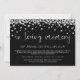 Floral memorial service invitation with "in loving memory" in a hand written script beneath a border of flowers where flowers and greenery in white and grey are drifting down against a black background. Add the invitation wording, name of your loved one, and details of the funeral in elegant white fonts against a black background.