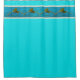 Bright turquoise shower curtain with decorative band of coastal seagrape blooms motif on a fluid sea-blue backdrop. This design is reminiscent of the salty ocean breeze in which its leaves sway.
