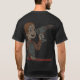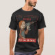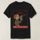 A man models a black t-shirt with a cartoon graphic of a sinister-looking child in overalls holding a large drill, bordered by a red rectangle with the warnings "USE WITH CARE KIDS" and "TOOLS CAN BE CRUEL."