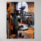 This design of a drill press in a machine shop near a window would be perfect for anyone in the building trades such as carpenters, plumbers, masons, and machinists.