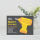 This invitation comes with a yellow and orange toy drill over a black grey background. Great for kids, especially boys who love handyman tools and likes to build and construct their own things. Personalise easily with your party details.