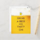 Drink A Beer and Party On Postcard. Amaze your friends with this cool funny tasty beer postcard with funny parody slogan "Drink a beer and party on"! This unique beer card is fully customisable! Add and personalise with your texts and image(s). A great and funny beer postcard for the beer drinking fans!