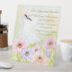 This drink pedestal sign features a hand-painted watercolor of a graceful whooping crane surrounded by soft pink, violet, and peach anemones. Symbolizing devotion and new beginnings, the romantic floral artwork adds a refined botanical touch to the celebration.