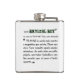 The flask itself is fine. It’s a cheap flask, obviously bought in bulk, however am prepared to overlook that. Given that it is a personalized item, I would have liked to have seen gift boxing instead of the generic packaging. Terrible printing, and/or quality. It’s a cheap, tacky vinyl. It is not cut straight and is also applied in a way that it is overhanging the bottom, causing the glue to catch on items and it will eventually roll and tear, damaging the wrap.