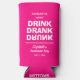 Drink Drank and the word Drunk upside down, these personalised Bachelorette party favour seltzer size drink coolers are fun to use during the celebration and for guests to take home as party favours. We show a hot pink background, but you can change it to any colour. MATCHING items in our collection.