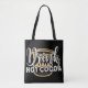 A design that says drink hot cocoa. This design looks really effective on this Tote Bag