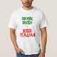 Fun St. Patrick's Day shirt celebrating both the Irish and Italians. Drink Irish kiss Italian is printed in big bold letters, first part is green, while the second is bright red as in the Italian flag. The two parts are separated by a lighter green shamrock.